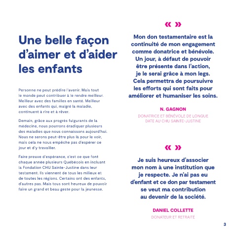d’assurer la pérennité de mon engagement envers la Fondation CHU Sainte-Justine dans leur mon nom à une institution que