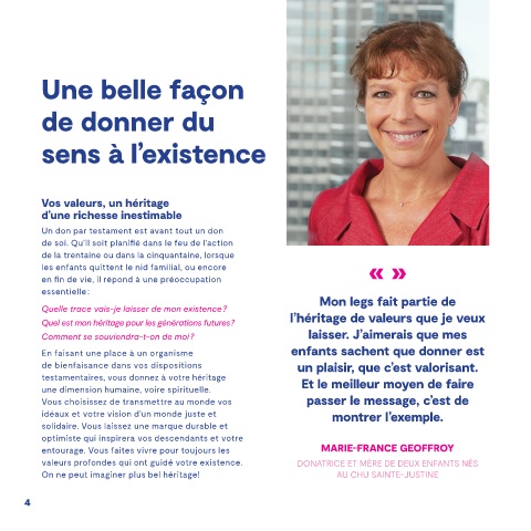 Vous choisissez de transmettre au monde vos passer le message, c’est de de Sainte-Justine, mais aussi et les équipes soignantes. un legs, poursuivre cette tradition.