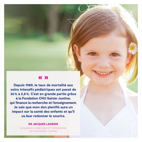 Un legs est une promesse de don qui se réalisera prévu à cet effet au CHU Sainte-Justine.